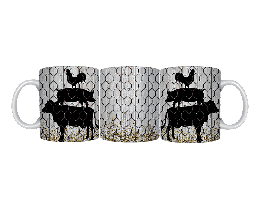 Add a whimsical touch to your morning routine with this charming Stacked Farm Animals ceramic mug. Available in an 11 oz and 15 oz size, this delightful mug features a full wrap design printed on both sides, showcasing an stacked cow, pig and chicken motif that brings a touch of farm magic to your daily beverages. The durable ceramic construction with a comfortable C-handle makes it perfect for sipping your favorite coffee, tea, or hot chocolate. Measuring 3.15 × 3.74 inches for the 11oz mug or 3.43 x 4.61 for the 15oz mug, this mug is both microwave and dishwasher safe, combining practicality with playful design. The high-quality ceramic material ensures your beverages stay at the right temperature while you enjoy the charming artwork that makes this mug a conversation starter at home or in the office.