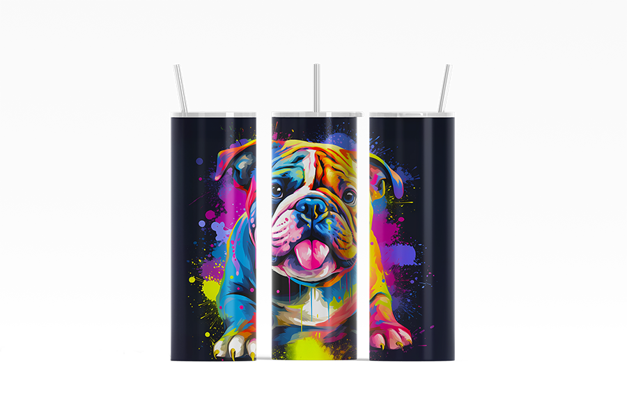 Add a splash of vibrant color to your morning routine with this charming Rainbow Bulldog Tumbler. This stainless steel masterpiece features a full wrap design printed on both sides, showcasing a delightful bulldog pattern in stunning rainbow hues. Available in a 20 oz size, this insulated tumbler comes with a metal straw and plastic lid. Perfect for coffee enthusiasts, tea lovers, or hot chocolate connoisseurs, this versatile tumbler is not microwave or dishwasher safe and it is recommended to hand wash to prolong the beauty of the tumbler. Whether you’re treating yourself or searching for a unique gift for a dog lover, this Rainbow Bulldog tumbler combines functionality with whimsical design to brighten up any kitchen collection