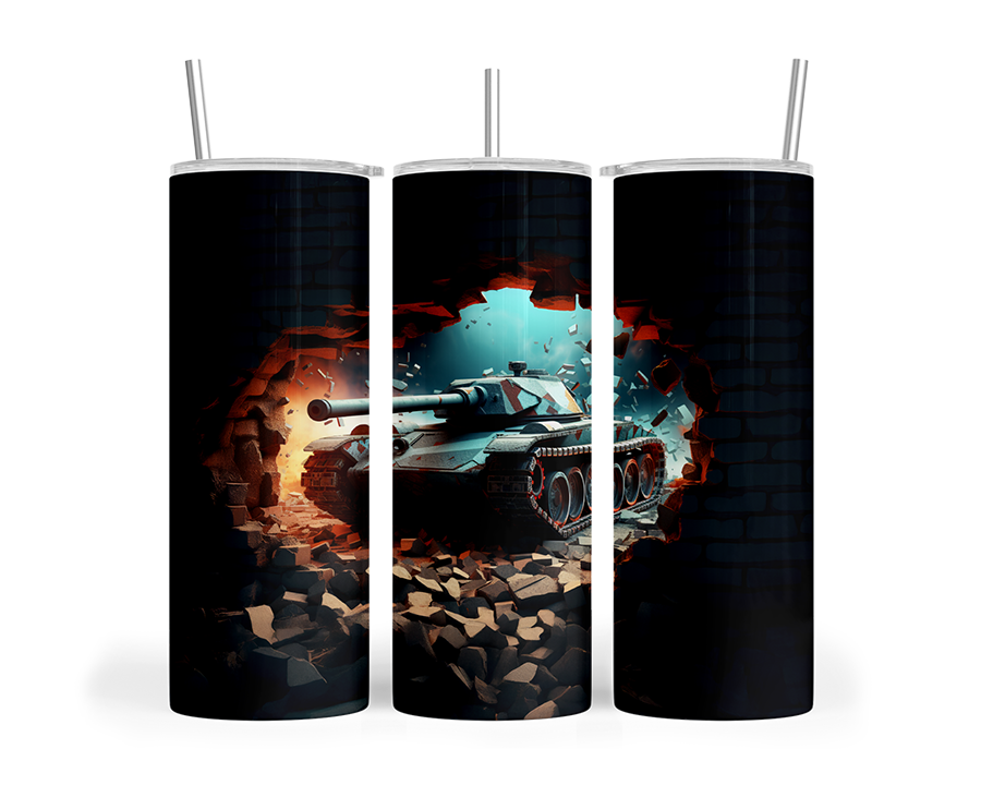 Add a splash of vibrant color to your morning routine with this charming Breakthrough Tanker Tumbler. This stainless steel masterpiece features a full wrap design printed on both sides, showcasing a powerful tanker breaking through a brick wall. Available in a 20 oz size, this insulated tumbler comes with a metal straw and plastic lid. Perfect for coffee enthusiasts, tea lovers, or hot chocolate connoisseurs, this versatile tumbler is not microwave or dishwasher safe and it is recommended to hand wash to prolong the beauty of the tumbler. Whether you’re treating yourself or searching for a unique gift for those who have served, this breakthrough tanker tumbler combines functionality with whimsical design to brighten up any kitchen collection.