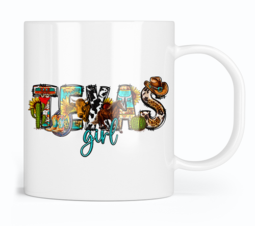 Show your Texas pride with this “Texas Girl” mug. This versatile ceramic mug features a delightful full-wrap design that is printed on both sides. Available in an 11 oz or 15 oz size, this durable mug is perfect for your daily coffee, favorite tea, or comforting hot chocolate. The classic C-handle provides a comfortable grip, while the sturdy ceramic construction ensures long-lasting use. Measuring 3.15 × 3.74 inches for the 11oz mug or 3.43 x 4.61 for the 15oz mug, this mug fits perfectly in standard cup holders and is both microwave and dishwasher safe for added convenience. Each mug is carefully crafted to bring a touch of class to your beverage experience. Whether you’re a looking for something hilarious or simply appreciate unique drinkware, this mug makes a wonderful addition to your collection or a thoughtful gift for someone special.
